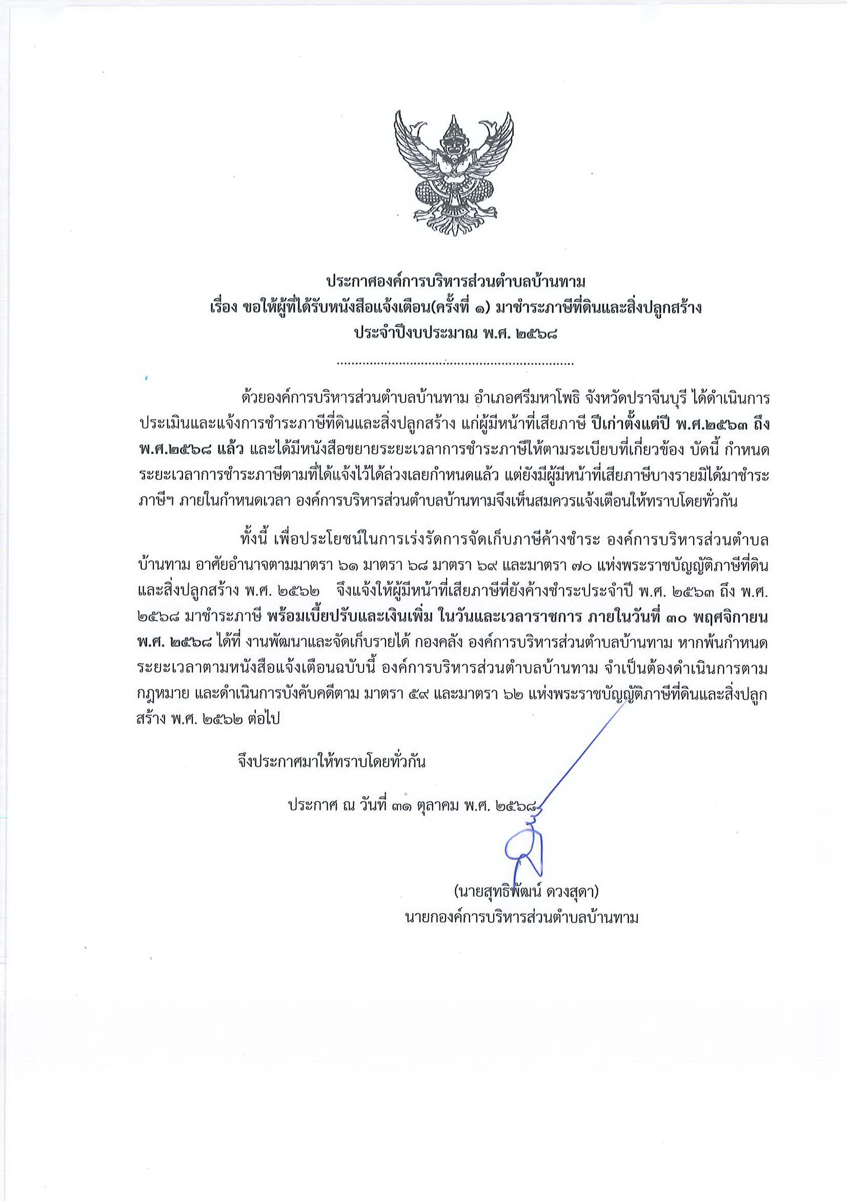 การชำระภาษีที่ดินและสิ่งปลูกสร้าง