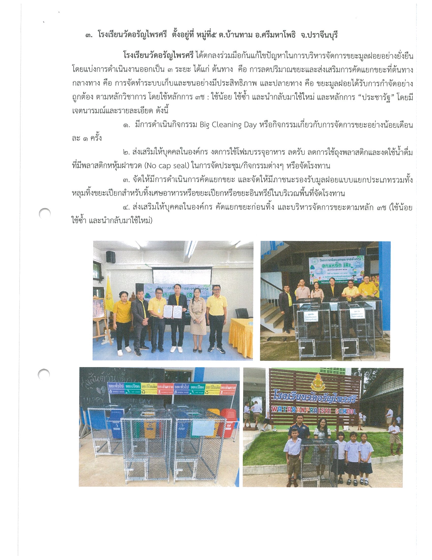 โรงเรียนวัดอรัญไพรศรี ได้ตกลงร่วมมือกันแก้ไขปัญหาในการบริหารจัดการขยะมูลฝอยอย่างยั่งยืน โดยแบ่งการดำเนินงานออกเป็น 3 ระยะ ได้แก่ ต้นทาง คือ การลดปริมาณขยะและส่งเสริมการคัดแยกขยะที่ต้นทาง กลางทาง คือ การจัดทำระบบเก็บและขนอย่างมีประสิทธิภาพ และปลายทาง คือ ขยะมูลฝอยได้รับการกำจัดอย่างถูกต้อง ตามหลักวิชาการ โดยใช้หลักการ 3ช : ใช้น้อย ใช้ซ้ำ และนำกลับมาใช้ใหม่ และหลักการ “ประชารัฐ” โดยมีเจตนารมณ์และรายละเอียด ดังนี้